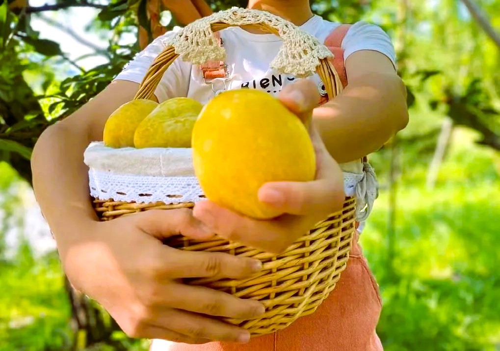 “今年第一筐黄金柰李,摘了!”
